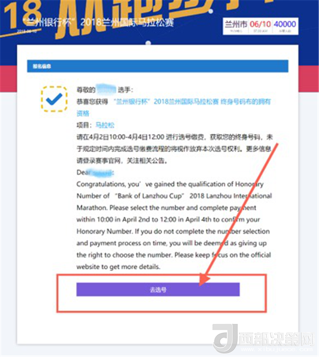 需要特別提請(qǐng)的是,原有終身號(hào)碼擁有者一經(jīng)選取將直接更換原有終身號(hào)碼并一直沿用至每場(chǎng)蘭州國際馬拉松賽,若勾選“服從組委會(huì)安排”或不進(jìn)行選號(hào)環(huán)節(jié),將自動(dòng)沿用跑者原有終身號(hào)碼。