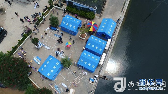 通海縣四街鎮(zhèn)中搭起的救災(zāi)帳篷(8月13日無人機(jī)拍攝)。