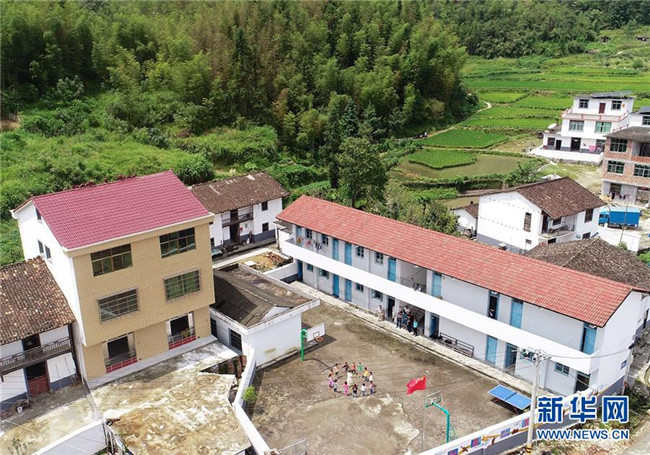 9月4日,陳春英和學(xué)生們在操場上玩游戲(無人機拍攝)。新華社記者胡晨歡 攝
