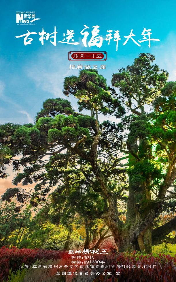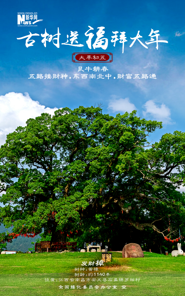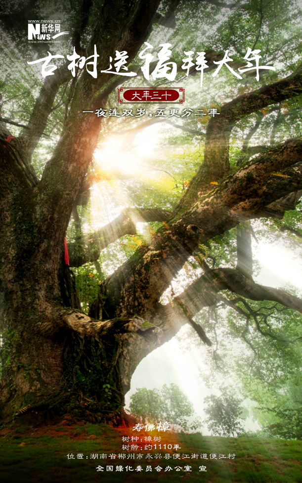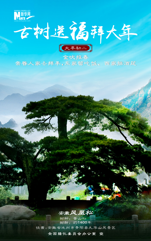 今年春節(jié),新華網(wǎng)聯(lián)合全國(guó)綠化委員會(huì)辦公室,策劃推出“古樹(shù)送福拜大年”系列海報(bào)12張,選取寓意喜樂(lè)吉祥、文化底蘊(yùn)深厚、景觀(guān)自然絕美的古樹(shù)名木,結(jié)合中國(guó)春節(jié)習(xí)俗,給廣大網(wǎng)友拜年啦!